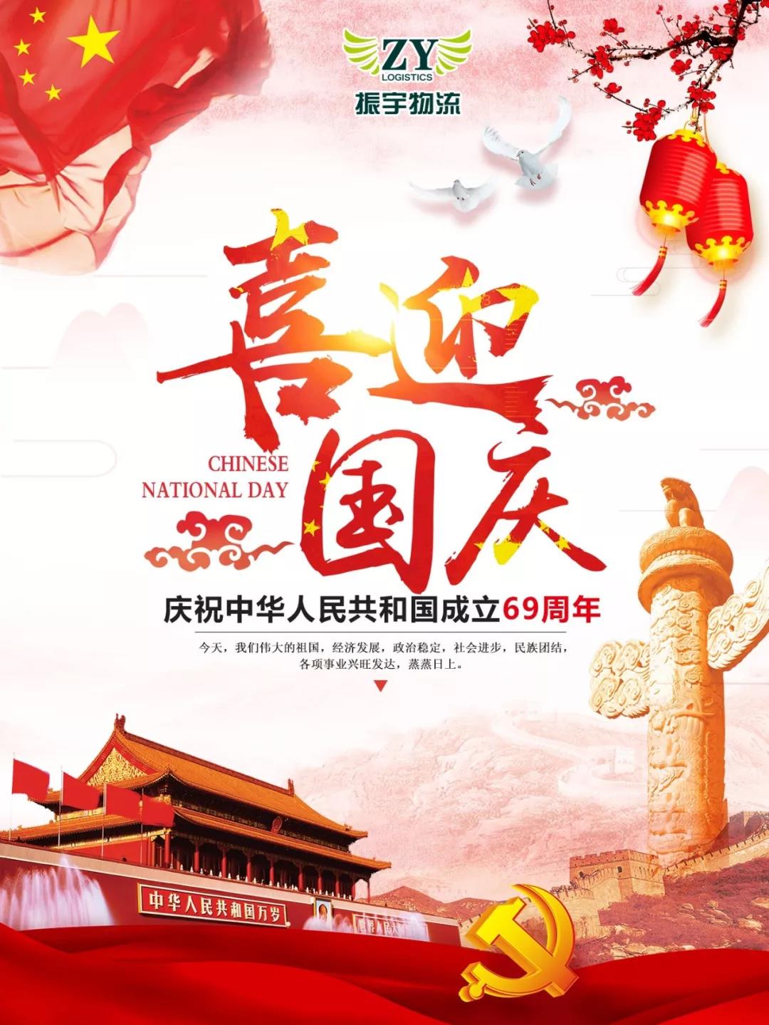 振宇物流2018年國慶放假通知!